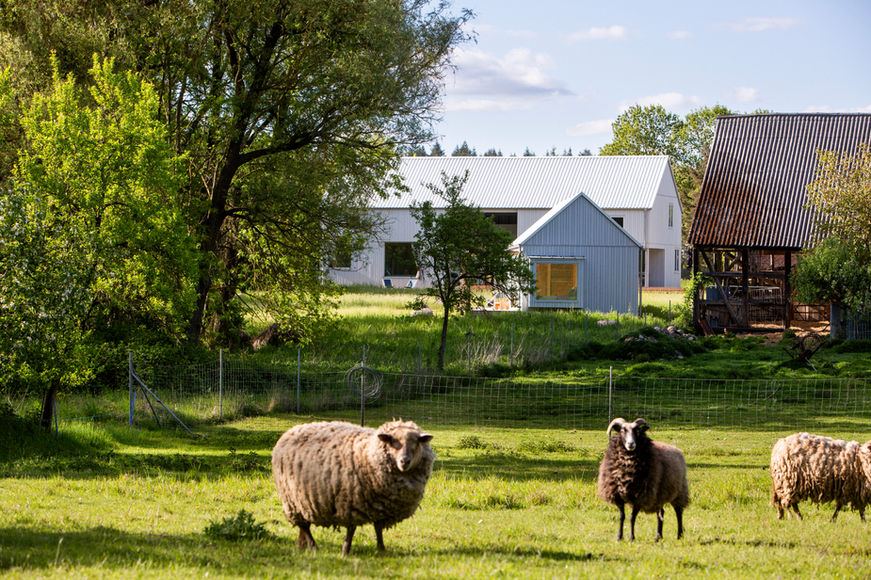 In dem Dorf Buchholz in der Uckermark ist in einem 7.000 qm großen Garten ein Ensemble mit zwei Holzhäusern für Feriengäste entstanden, welches die Natur bewusst in den Mittelpunkt stellt.
